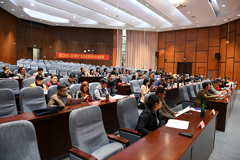 为了深入学习贯彻党的十九届四中全会精神,贯彻落实《中国共产党宣传工作条例》,进一步提升新时代全区高校宣传思想工作骨干队伍的能力和水平,11月17日至22日,由自治区党委教育工委主办,广西师范大学和浙江大学联合承办的2019年广西高校宣传部长培训班在浙江大学举行。