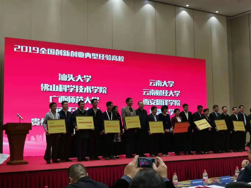 11月22日,2019年度全国创新创业典型经验高校总结交流会在上海召开,会上表彰了2019年度全国创新创业典型经验高校50强,教育部副部长翁铁慧等领导出席,并为2019年度荣获全国高校创新创业典型经验高校的50所高校授牌。我校作为广西唯一获奖参会,创新创业学院负责人代表学校上台领奖。