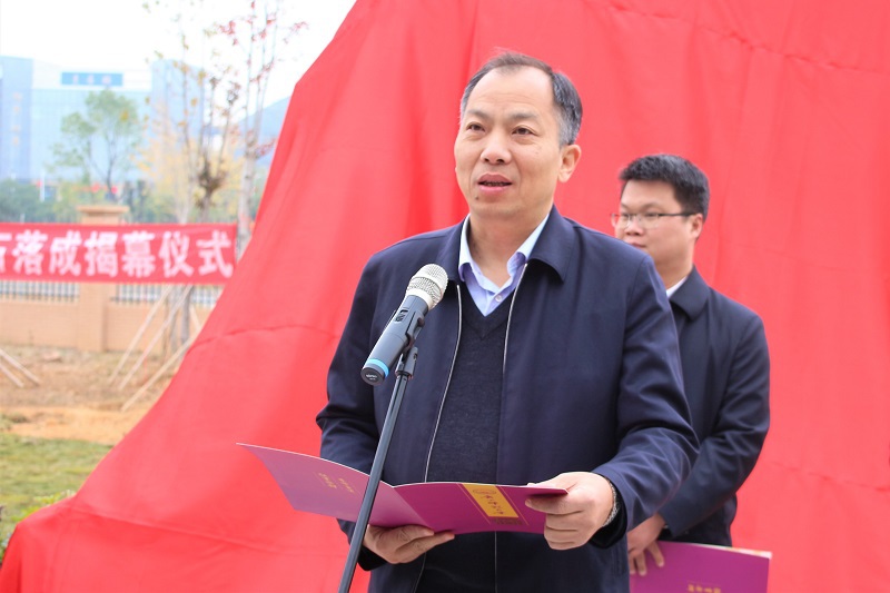 旷永青副书记与教育发展基金会、后勤保障处/后勤服务集团、校团委负责人共同为“青马林”文化石揭幕