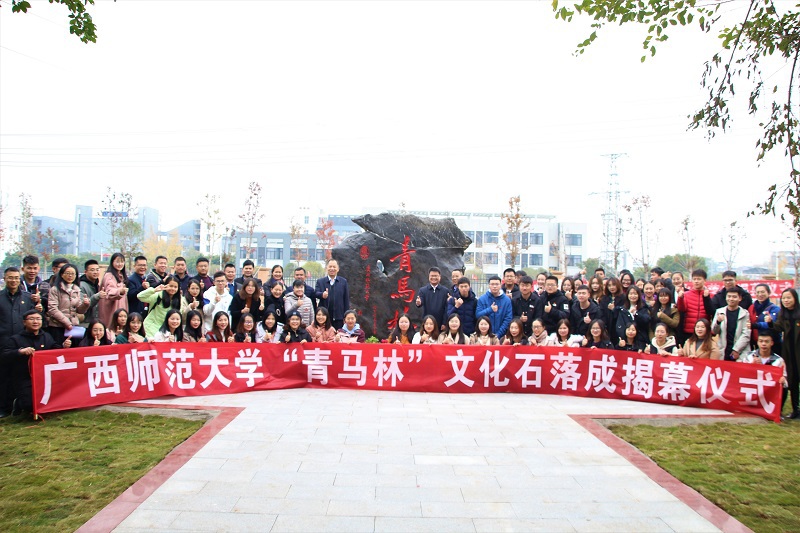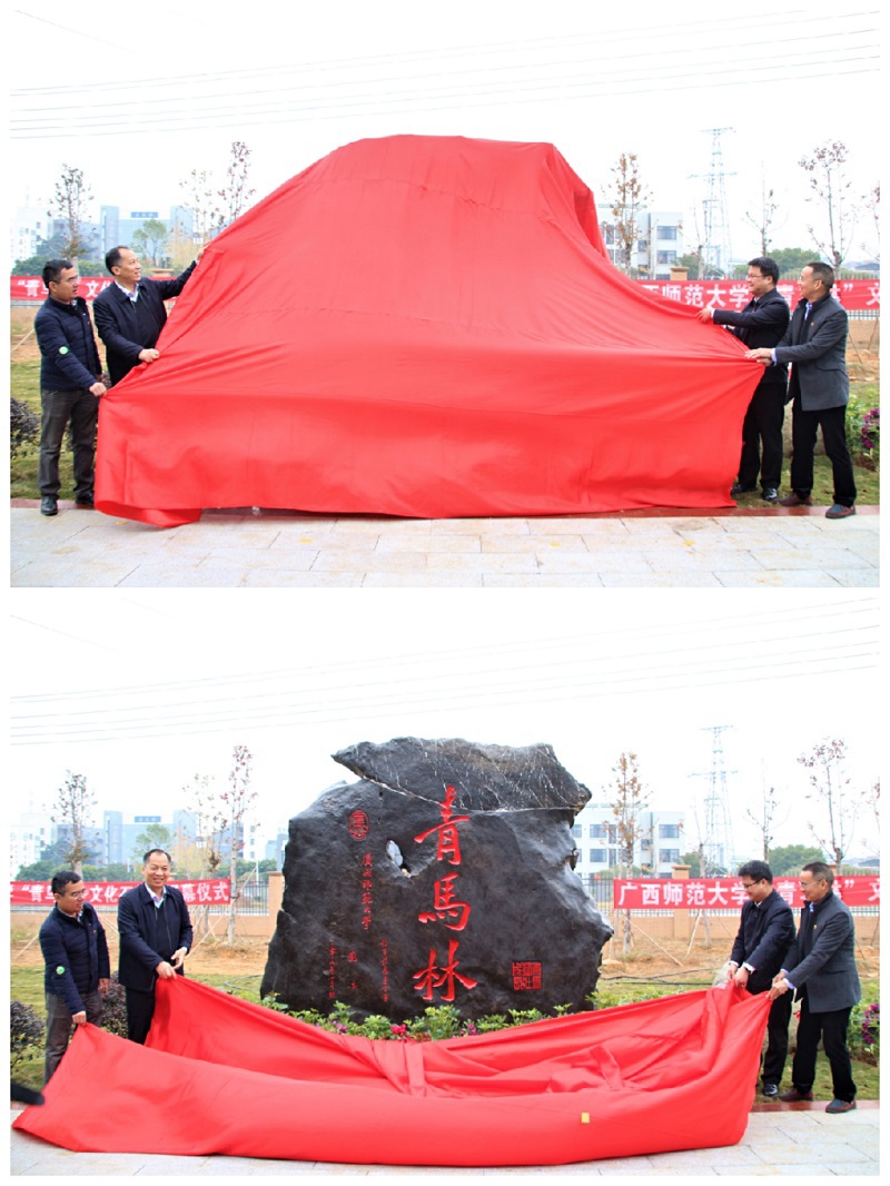 12月9日上午,我校“青马林”文化石揭幕仪式举行,校党委副书记旷永青,校团委、教育发展基金会、后勤保障处/后勤服务集团等单位负责人出席仪式,雁山校区各学院(部)团委书记、研究生支教团、区校青马班学员代表近100人参加活动。校团委主要负责人主持仪式。