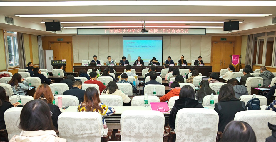 2019年12月14日,广西师范大学学术论文编撰工作坊启动仪式在育才校区图书馆一楼报告厅举行。来自上海交通大学、中国人民大学、南开大学、华中师范大学、暨南大学等一流学府的多位知名学者参加了会议。校党委副书记赵铁致揭幕辞并讲话。社科处负责人主持启动仪式,政治与公共管理学院负责人代表首期工作坊的联合举办单位全程参与会议,师生代表共计100余人参与启动仪式。