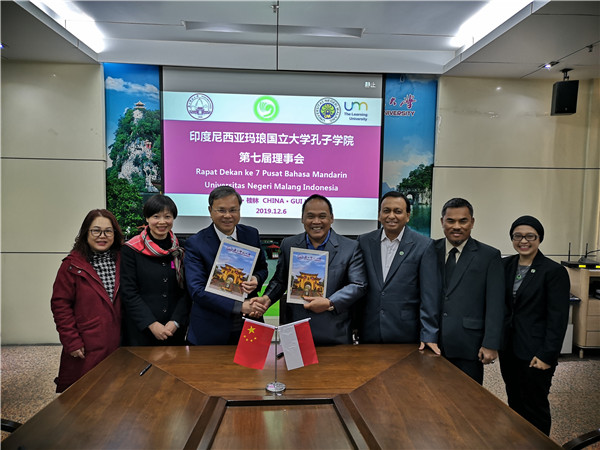日前,印度尼西亚玛琅国立大学孔子学院第七届理事会在我校举行。印度尼西亚玛琅国立大学罗福丁校长一行6人到访与会,我校苏桂发副校长在国际教育交流中心201会议室会见了代表团,国际合作与交流处、文学院/新闻与传播学院、化学与药学学院、体院学院相关人员列席参加。