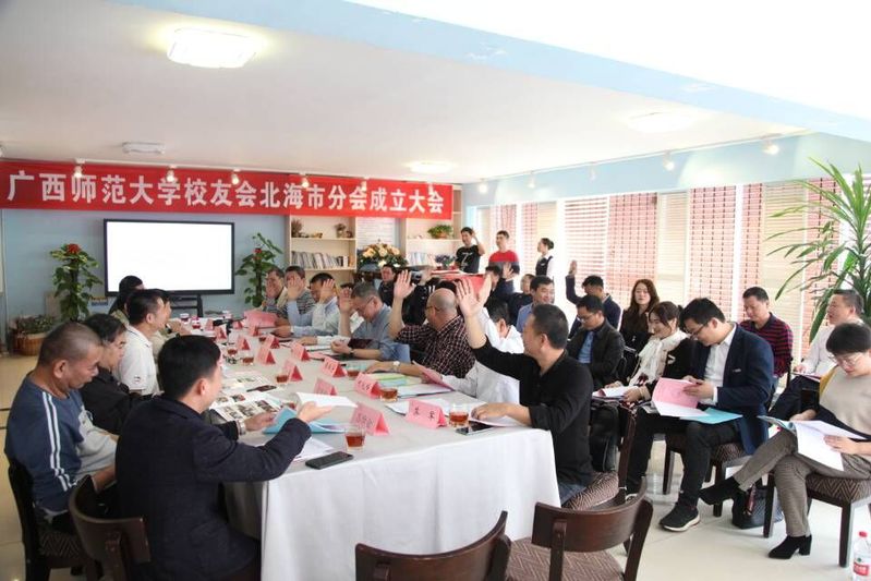 会上,北海市分会筹备组作了北海市分会筹备情况报告,审议通过了《广西师范大学校友会北海市分会章程(草案)》、《广西师范大学校友会北海市分会财务管理办法(草案)》《广西师范大学校友会北海市分会会员管理办法(草案)》,学校校友工作办公室负责人宣读了《关于同意成立广西师范大学校友会北海市分会的批复》文件,我校党委常委、纪委书记莫坷向北海市分会授予了会牌、会旗。大会还向当选的理事会成员颁发了聘书。