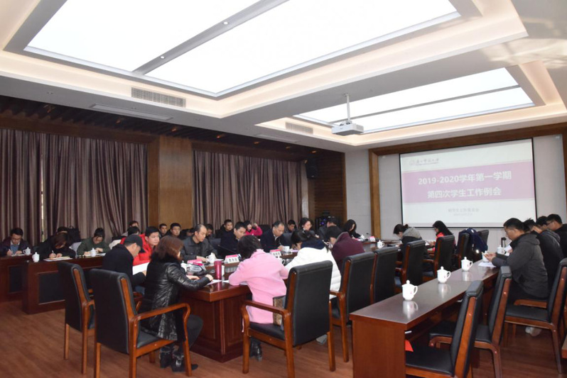 12月27日,我校在雁山校区起文楼第四会议室召开2019-2020学年第一学期第四次学生工作例会。校党委副书记旷永青出席,学工部(处)、校团委、保卫处、教务处、财务处、研工部、后勤保障处/后勤集团相关负责人,各学院(部)分管学生工作的党委副书记以及学工部(处)各科室相关人员参加会议。会议由学工部(处)主要负责人主持。