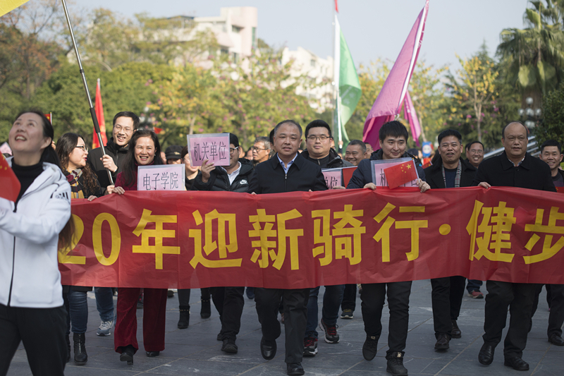 一年来祖国繁荣富强、人民富足安康;一年来学校建设成绩斐然、教工安居乐业。2019年12月27日,由校工会、校体委精心联合组织的教职工2020年元旦迎新骑行、健步走活动,伴随着全校师生的欢声笑语在育才和雁山校区同时举行。校党委副书记、校工会主席赵铁出席活动,开幕式由校工会负责人主持。