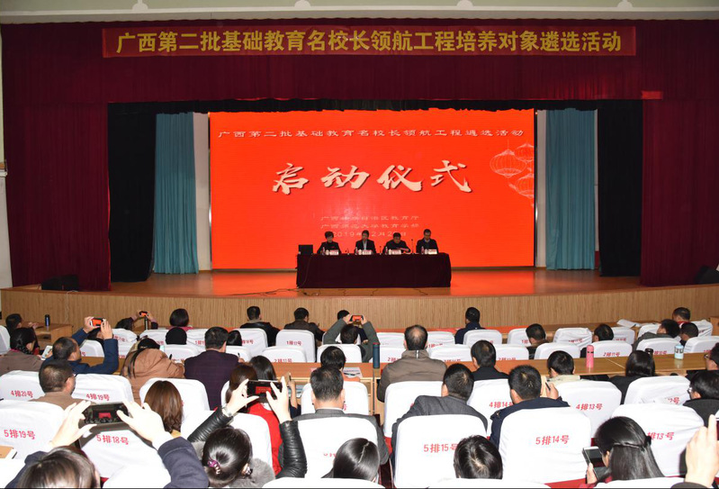 为贯彻落实《中共广西壮族自治区委员会广西壮族自治区人民政府关于全面深化新时代教师队伍建设改革的实施意见》的精神,进一步加强我区基础教育名校长队伍建设,12月29日上午,在我校田家炳教育书院召开了广西第二批基础教育名校长领航工程遴选活动启动仪式。本次遴选活动是在“十三五”期间第一批名校长领航工程即将完成,积累了丰富的宝贵经验基础上的又一次传承和创新。我校副校长兼教育学部部长孙杰远教授、自治区教育厅教师工作处副处长霍玉文、我校教育学部相关负责人和来自广西各个地区的195名校长遴选对象参与此次活动的启动仪式。