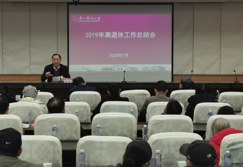 会上,离退处负责人作了2019年离退休工作总结,从主要工作与成效、存在的问题和困难、下一步工作打算三个方面展开,介绍了学校离退休基本情况、全面回顾党建工作和行政业务工作方面取得的工作成效。结合新中国成立70周年开展系列活动、扎实“不忘初心、牢记使命”主题教育,落实好“两个待遇”,积极打造“文化养老”品牌活动情况、积极参与广西和学校改革发展与扶贫工作,大力支持各涉老组织开展有色有声的活动。同时简要介绍2020年离退休工作的思路和主要努力方向。