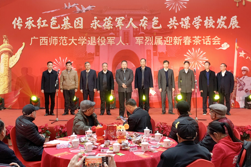 1月4日,我校举行“传承红色基因,永葆军人本色,共谋学校发展”退役军人、军烈属迎新春茶话会。全体在家校领导、校党委常委与学校退役军人、军烈属欢聚一堂,共叙情谊,共谋发展、共聚合力、共话未来。茶话会由校党委副书记旷永青主持。