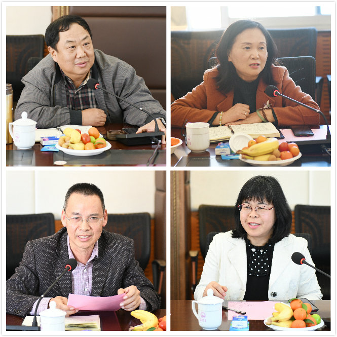 退出领导岗位干部代表王让虎、何小贞、蒋才运、黄世香进行了发言。他们回顾了任职以来的心路历程,感谢学校党委一直以来的关心和支持,表示今后将继续为学校发展献计出力,为早日建成国内高水平大学贡献智慧和力量。