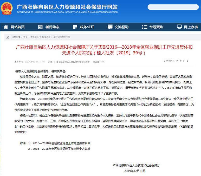 近日,自治区人力资源和社会保障厅公布了全区就业促进工作先进集体名单,全区就业促进工作先进集体共100个,其中高校共11所,我校大学生就业指导中心获“2016-2018年全区就业促进工作先进集体”称号。