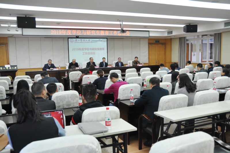 1月7日下午,我校2019年度学位与研究生教育工作总结会在育才校区图书馆一楼报告厅召开。副校长孙杰远,各学院(部)分管研究生教育工作负责人、广西一流学科(含培育)项目负责人、研究生教学秘书及研究生工作部、研究生院全体人员共50余人参加会议。研究生院负责人主持会议。