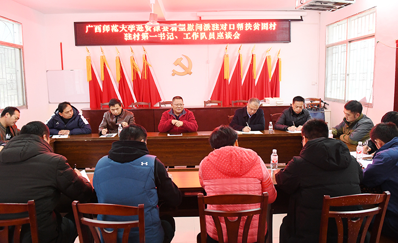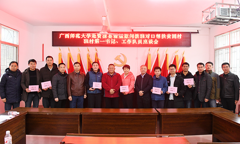 驻村第一书记、工作队员汇报了一年来工作情况和目前面临的困难。资源镇、金山村负责人进行发言,对广西师大扶贫工作给予了充分肯定,表示广西师大派驻资源县第一书记爱岗敬业,工作的积极性、主动性、创新性得到了上级部门的一致认可;每一位驻村第一书记根据本村的情况因地制宜,引进项目,发展产业,助力脱贫攻坚,老百姓得到了实实在在的受益。