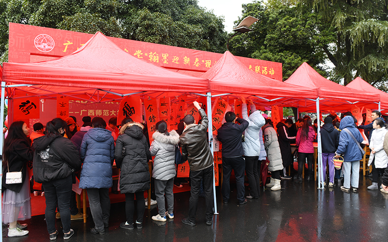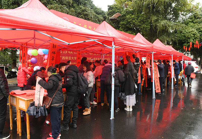 书法家和书法爱好者挥毫泼墨,把一幅幅写好的春联送到师生们的手中,为他们送上新春的祝福。尽管天气寒冷,小雨淅沥,但活动现场却是一派暖意融融、喜庆洋洋的景象。大家高兴地聚在一起,写春联、送春联、赏春联。火红的春联和“福”字传递着幸福吉祥,大家在彼此的祝福声中憧憬着新的一年越来越好。
