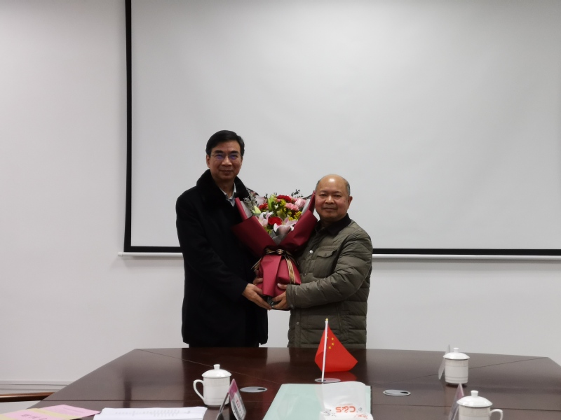 自治区科协副主席梁宏一行与邓荫伟教授进行了座谈交流,梁宏介绍了在”全国科技工作者日”以及春节来临之际开展科技工作者慰问活动的重要性,对邓荫伟教授在油茶、银杏与金花茶等林业研究中取得成绩表示肯定,并向邓荫伟教授致以节日的问候和祝福。座谈会上,邓荫伟教授谈了自身的科研工作与生活情况,并感谢学校提供良好的科研平台,感谢自治区科协关心与支持。