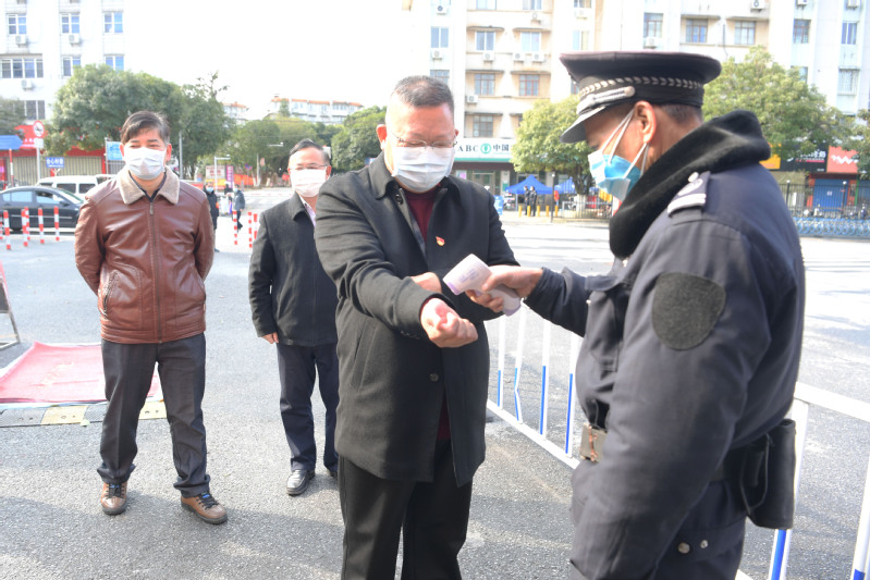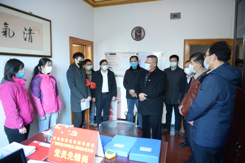 2月16日上午,学校新型冠状病毒感染的肺炎疫情防控工作领导小组组长、校党委书记邓军,学校疫情防控工作督查考核组组长、校纪委书记莫坷,校党委常委、机关党委书记黄海波率党办、校办、武装部/保卫处负责人,在王城、育才校区走访看望了机关党委党员先锋岗值班人员。邓军在看望时勉励大家,要充分发挥基层党组织的战斗堡垒和党员先锋模范作用,坚决阻止疫情向校园蔓延,打赢疫情防控的人民战争总体战、阻击战。