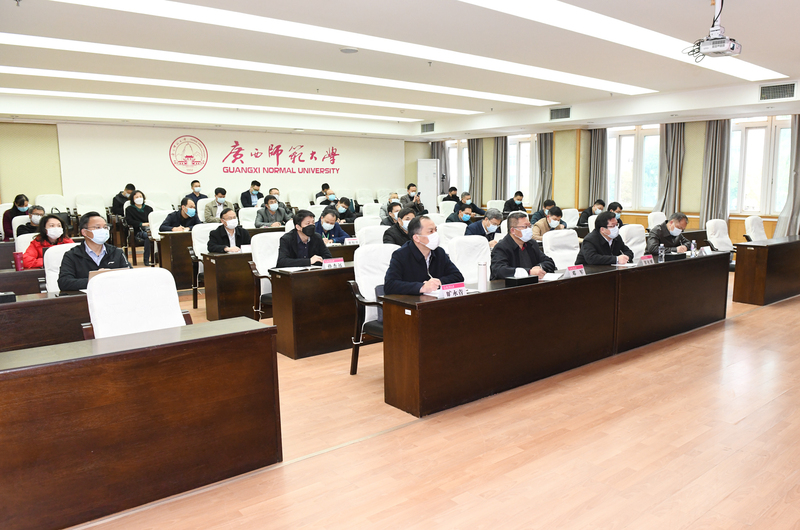3月2日下午,自治区人民政府召开全区应对新冠肺炎疫情做好春季开学工作电视电话会议。自治区人民政府副主席黄俊华出席会议并讲话,自治区党委教育工委书记、教育厅厅长唐咸仅参加会议。会议以电视电话会议形式召开,我校在育才校区图书馆一楼报告厅设分会场。校领导邓军、贺祖斌、旷永青、赵铁、黄文韬、苏桂发、孙杰远、莫坷、林春逸、李英利,校党委常委黄轩庄、林国庆、黄海波,以及学校疫情防控工作领导小组成员参加会议。
