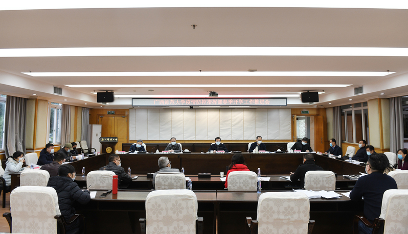 3月3日上午,我校疫情防控指挥部春季开学工作推进会在育才校区图书馆一楼会议室召开。校领导贺祖斌、旷永青、赵铁、黄文韬、苏桂发、孙杰远及疫情防控指挥部各组组长参加会议。会议由校长、校新型冠状病毒感染的肺炎疫情防控工作领导小组组长、指挥部指挥长贺祖斌主持。
