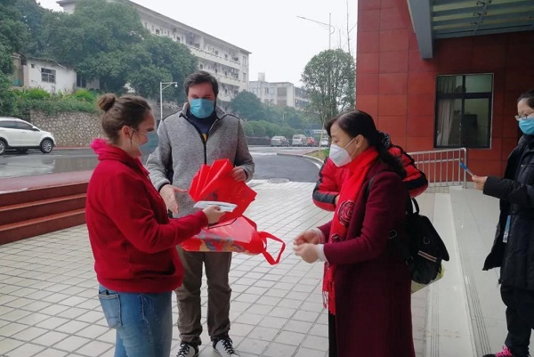 On 2nd February, Liu Yue’e, Secretary of CPC CICE Committee and Li Dongmei, Director of Office of International Cooperation and Exchanges gave masks to international teachers and students free of charge.