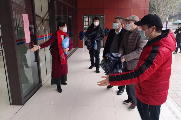 1月26日大年初二,校党委副书记、校长贺祖斌及各职能部门领导莅临国际文化教育学院检查指导防疫工作并看望留校国际学生和外教