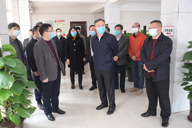 黄俊华一行在雁山校区对集中隔离点和和我校开展线上教学情况进行了实地调研。在集中隔离点,黄俊华详细询问了隔离房间的数量、隔离消毒措施、医护人员配备等情况。当看到集中隔离点设施完备、制度齐全及医护人员和服务人员配备到位时,黄俊华给予了充分肯定,并勉励大家,一定要把各项预案工作做细致、做扎实。