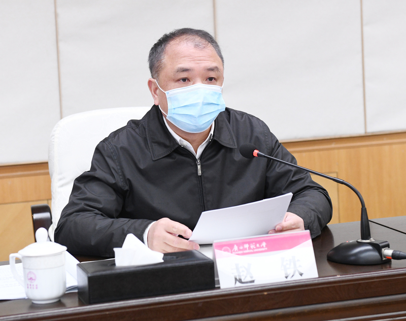 校党委副书记、校脱贫攻坚(乡村振兴)工作领导小组副组长赵铁传达上级文件和会议精神