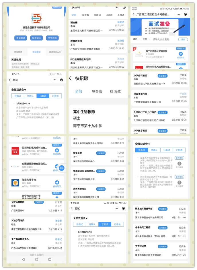 据悉,本次网络双选会双选会单位涉及广东、广西、浙江、北京、湖南、福建、江苏、云南等各省的102个地市400多家用人单位参会,不仅有广西的,还有很多外省优质单位,包括学校和各类行业500强,涵盖全国各地不同专业,其中招聘最多的专业是汉语言文学、教育学、电子信息工程、管理学、经济学等,需求岗位1440个,需求人数达2.5万人,投出电子简历数23980人次,除了广西区内未就业建档立卡毕业生、未就业毕业生参会外,还吸引了湖南大学、湖南师范大学、哈尔滨师范大学、 江西师范大学等各类高校毕业生参加。当天网络顺畅,单位及毕业生对此次视频双选会表示满意。