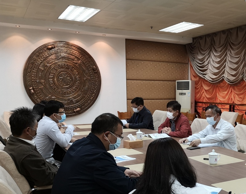 在育才图书馆217室,图书馆党总支主要负责人围绕图书馆疫情防控工作、疫情期间图书馆读者服务工作、开学准备工作等方面向校督查组一行做了详细汇报。