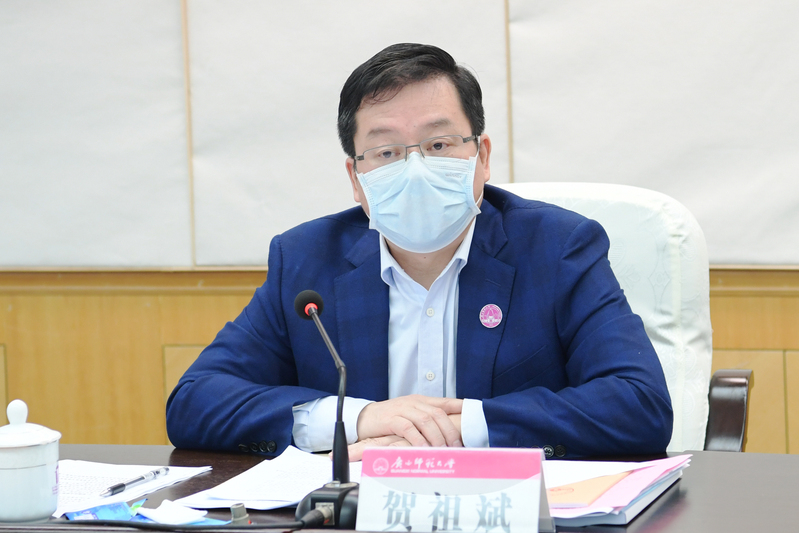 贺祖斌在讲话中指出,“十四五”时期是我校推进综合改革与“双一流”建设,实现国内高水平大学建设目标的重要时期;依据国家出台的最新政策文件,全面贯彻落实全国教育大会精神和《中国教育现代化2035》要求,建立符合我校实际的科研评价体系,对于全面把握新时代高等教育内涵式发展新机遇、充分发挥科研创新对学校发展的引领作用、实现国内高水平大学建设目标具有十分重要的意义。在谈及思考通过高质量科研支撑学校高质量发展的途径和措施时,贺祖斌校长强调:一是要转变思想观念,深刻认识科技改革新政策系列文件的重要意义。完善科技创新体制机制,推进科技创新治理体系和治理能力现代化,对于优化我国学术生态、建立健全科学的评价体系具有重要启示,对扭转目前存在的不良科研评价导向,促进产出高质量的科研成果,推动高等学校回归学术初心,净化学术风气,优化学术生态具有重要意义。二是加强统筹兼顾,以“主人翁”姿态积极参与制度建设。科研管理部门以及其他相关职能部门要尽快制定建立健全我校的科研分类评价实施方案、“三类高质量论文”目录清单以及知识产权管理办法,并对学校相关管理文件进行修订;充分发挥学院(部)、学科作用,各部门、各单位积极主动参与各项科技创新体制机制建设。三是坚持质量优先和创新导向,建立适应新时代的科研评价体系。从新时代国家与学校战略发展的视角深刻理解“科创创新,职称评定、绩效考核、人才评价、学科评估、资源配置”等事物本原的本质内涵、重要外延、度量方式,建立起与新时代科研发展新需求相适应的科学的评价体系。四是完善平台建设,强化科技成果转化及技术创新体系建设,从强化科技转化专业化机构和人才队伍建设方面进一步提升学校的科技成果转移转化工作。五是分清轻重缓急,结合国家相关文件要求和学校工作要点,在深入基层开展充分调研和充分听取师生意见的基础上,出台或修订我校的相关科研管理办法,深入推进学校科技创新治理体系和治理能力现代化。