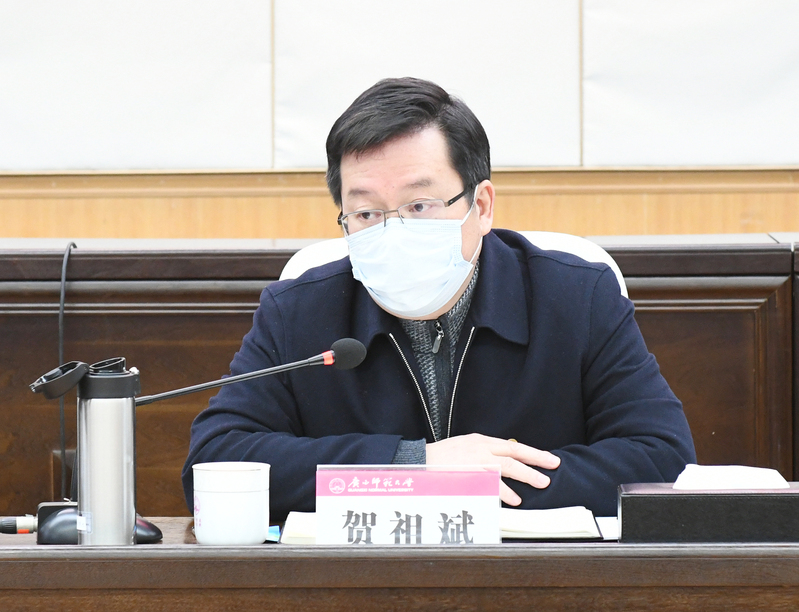 校长、学校疫情防控工作领导小组组长、指挥部指挥长贺祖斌讲话。贺祖斌要求,疫情防控指挥部各工作专班要高度重视做好开学前的准备工作,做好充分考虑,逐项落实相关工作,对存在的问题要及时进行查漏补缺;要明确责任,对标对表,逐一落实开学准备工作的要求;要充分研判开学后应急准备工作,如隔离区、物资储备、演练等相关工作;要继续做好学生返校前的线上教学工作和返校后的课堂教学安排,同时要做好线上教学质量监督和评估,确保教学质量;还要充分做好返校后学生实习实训,毕业生的论文审查、毕业答辩、学位授予等工作的安排。
