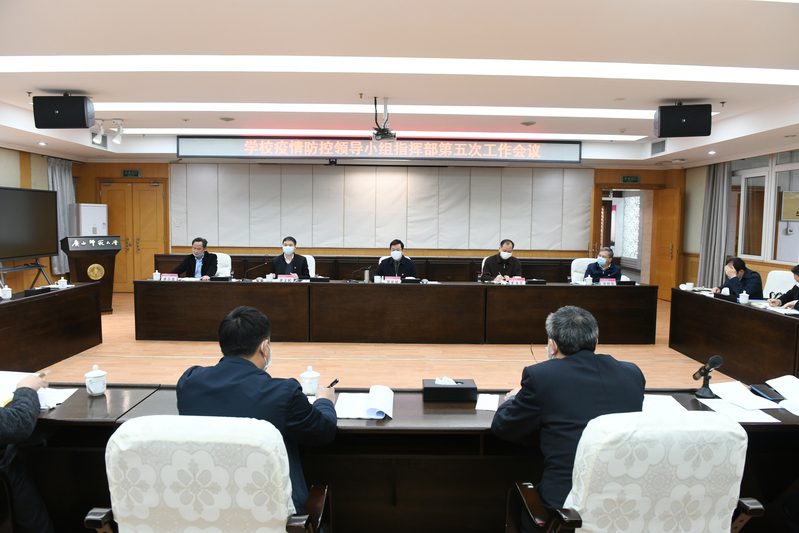 4月4日上午,我校在育才校区图书馆一楼会议室召开疫情防控领导小组指挥部第五次工作会议,再研究再部署学校疫情防控与复学返校各项工作。校领导贺祖斌、旷永青、黄文韬、苏桂发、林春逸,疫情防控指挥部各组组长参加了会议。副校长、学校疫情防控工作领导小组副组长、指挥部常务副指挥长黄文韬主持会议。