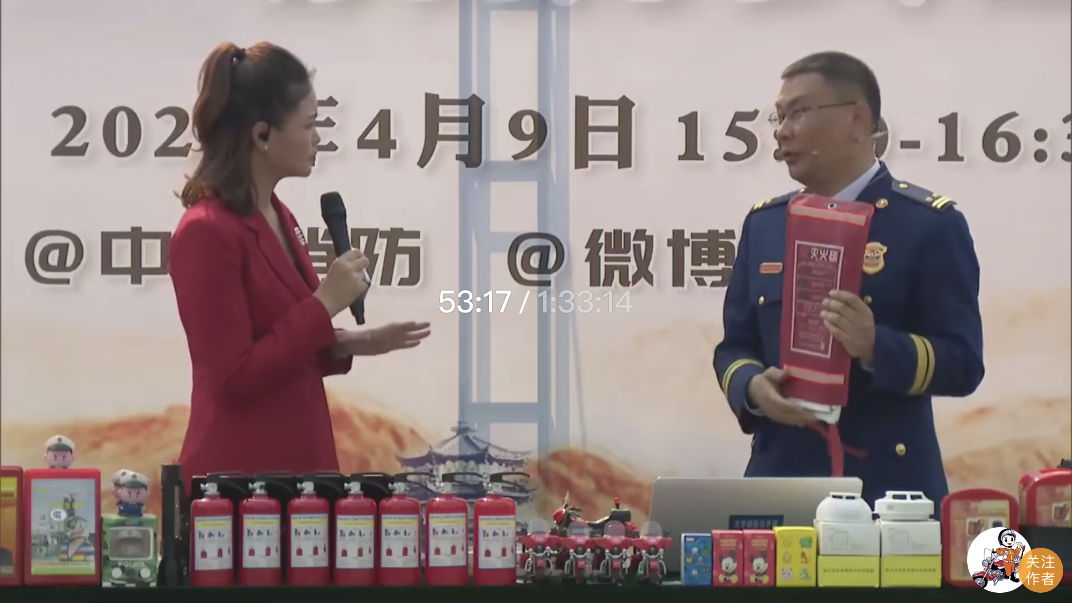 主持人正在对消防器材的使用进行讲解