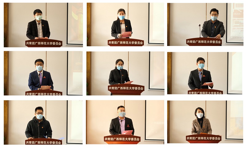 旷永青副书记对我校各级团组织过去一年在引领青年思想、打造“第二课堂”精品活动、营造校园学习创新氛围等服务青年成长成才的工作中取得的成绩给予充分肯定。他强调,推动我校共青团事业再上新台阶,应当以真抓实干的精神做到五个“坚持”:一是坚持理论武装,做到常学常新、增长才干,奋力补足精神之“钙”、筑牢思想之“魂”;二是坚持攻坚克难,做到勇于创新、善于破难,奋力打通共青团改革“最后一公里”;三是坚持只争朝夕,做到凝聚力量,全团动员,奋力实现疫情防控和高水平大学建设双推进;四是坚持聚焦主业,做到提档升级、资源整合,奋力打造“文化校园升级版”;五是坚持勇立潮头,做到出新出彩、有声有色,奋力激发学校共青团“新活力”。
