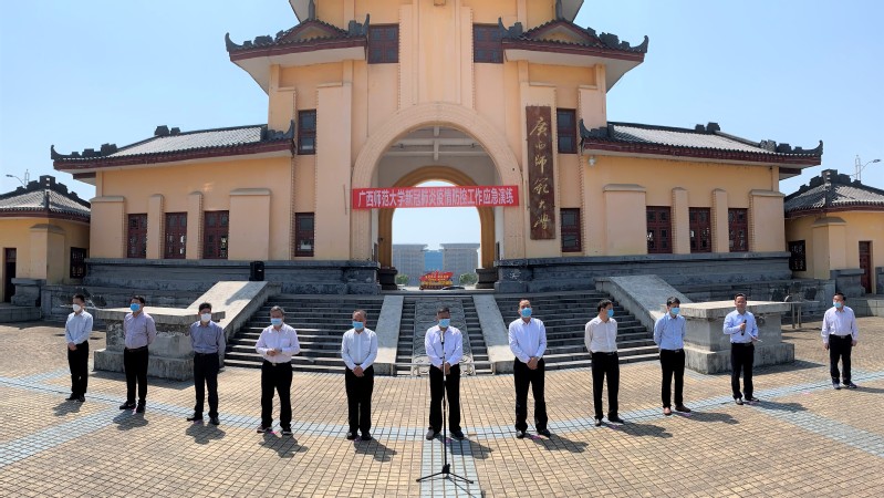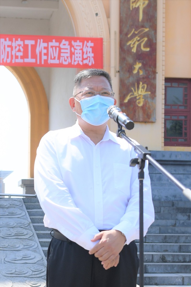 根据学校工作部署,为扎实细致做好学生返校前各项准备工作,切实提高我校应对疫情突发情况快速反应、规范处置、联防联控的能力,确保学生返校当日和开学后的各项工作平稳有序进行,4月15日下午,我校在雁山校区举行广西师范大学2020年春季学期开学学生返校应急演练。全体在家校领导、学校新冠肺炎疫情防控工作领导小组全体成员及学校春季开学工作各工作专班出席演练活动,校党委书记、学校疫情防控领导小组组长邓军宣布演练开始,校党委常委、副校长、学校疫情防控领导小组指挥部副指挥长林春逸主持演练。