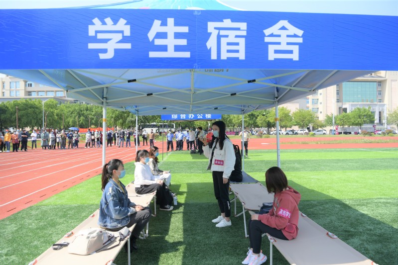 本次演练采取场景模拟和现场演练相结合的方式,根据返校报到过程中的重点环节和风险点、防控点进行了应急实战演练。演练共设三个场景,由辅导员代表扮演“学生”,分别模拟了学生返校报到、宿舍生活和课堂教学三个场景的防控应急处置,对学生入校、学生宿舍健康监测、公共场所教学和疑似病例应急处置等进行了重点演练,从排队引导、测温亮码、身份核验、扫码报到、校内接驳各环节,到宿舍、教室、学校隔离观察区各领域进行全方位演练。