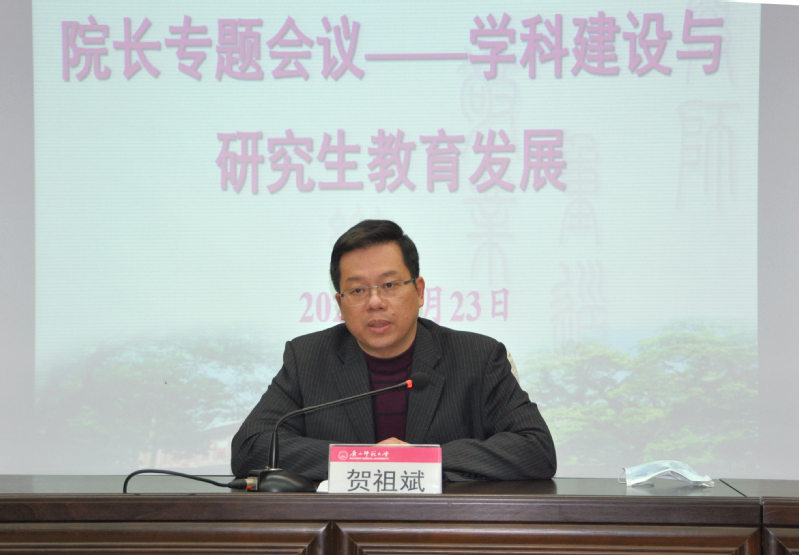 贺祖斌校长在讲话中指出,院长专题会议制度实施对推动学科建设发展具有重要意义。我校要充分发挥学科建设对学校发展的引领作用,以实现国内高水平大学建设目标。