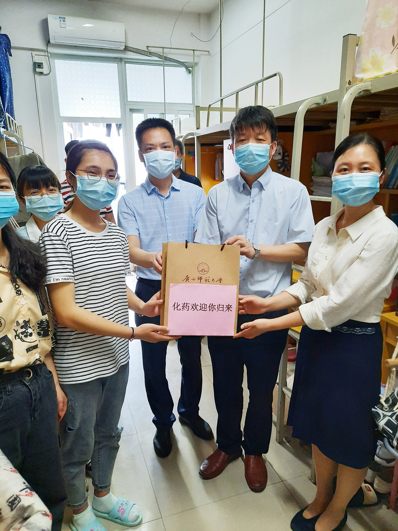 “欢迎同学们回校回家,你们回来我们非常高兴。”在学生宿舍,邓军与回校的同学们亲切交谈。邓军殷切叮嘱大家,一定要注意身体健康,宿舍房间要保持通风;要遵守学校相关规定,开心地学习、愉快地生活。邓军还为同学们送上了防疫物品“礼包”。