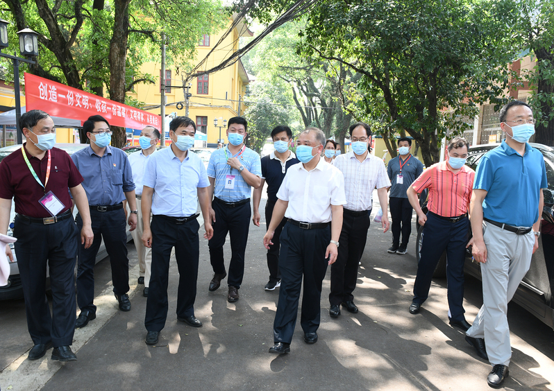党办/督查办、校办/发规办、宣传部、学工部(处)、教师工作部/人事处、武装部/保卫处、教务处/教师教学发展中心、研究生工作部/研究生院、国际文化教育学院/国际合作与交流处、后勤保障处/后勤服务集团、校医院等相关负责人陪同调研。