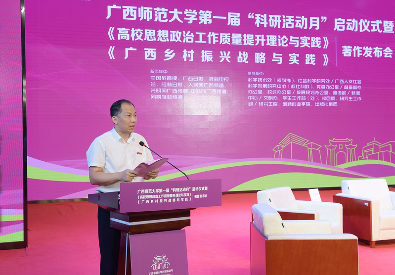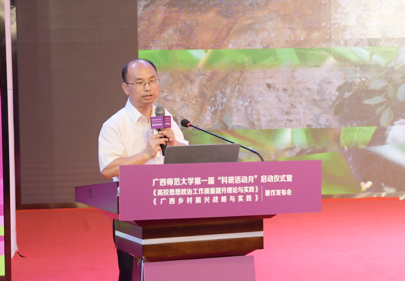 启动仪式后,现场举行了《高校思想政治工作质量提升理论与实践》《广西乡村振兴战略与实践》著作发布会,这也是本届“科研活动月”的第一项活动。