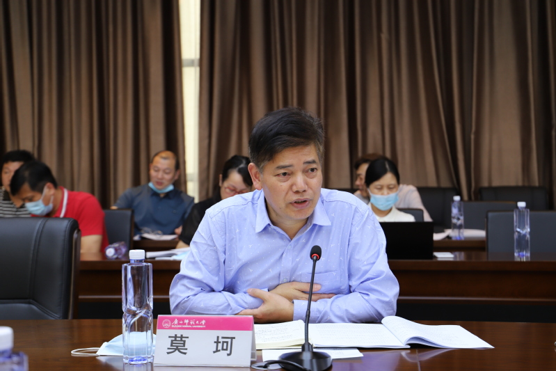 5月13日下午,我校2020年硕士研究生招生复试和录取工作布置暨远程复试系统使用培训会在雁山校区起文楼召开。校长贺祖斌、副校长孙杰远、校纪委书记莫坷出席会议。校硕士研究生复试录取工作领导小组成员、各研究生培养单位主要负责人、教学秘书及网络管理工作人员参加了培训会。会议由孙杰远主持。