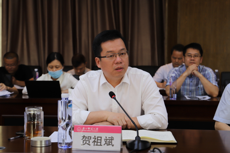 贺祖斌在会上讲话时指出,今年受新冠肺炎疫情影响,大多数高校采取线上远程复试的方式,教育部、教育厅提出了更高的要求,我校要全面加强复试录取工作。第一,各研究生培养单位要树立底线思维,安全有序推进复试工作,确保安全性、科学性和公正性。第二,强化主体责任,提高政治站位,充分考虑各方面的因素,认真完善复试细则,规范复试管理。各学科带头人认真研究复试办法,并加强保密意识,更好地发挥作用。第三,联合联动防控,各部门按照疫情防控的要求,对考核小组集中地点进行消毒,同时加强网络信息中心、财务处、后勤保障处等各部门的联动,落实复试工作各项要求。最后,强化信息公开,复试录取在“阳光”下进行,确保今年硕士研究生调剂、复试和录取工作圆满完成。