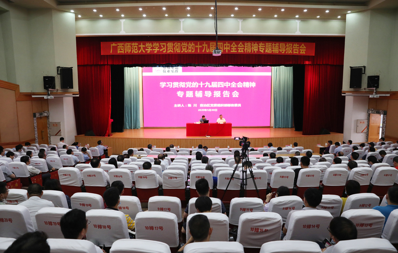 5月30日下午,我校在育才校区田家炳教育学院报告厅举行学习贯彻党的十九届四中全会精神专题辅导报告会。自治区党委组织部部务委员陈川应邀作题为《胜在执行力》的专题报告。报告会由校党委书记邓军主持。