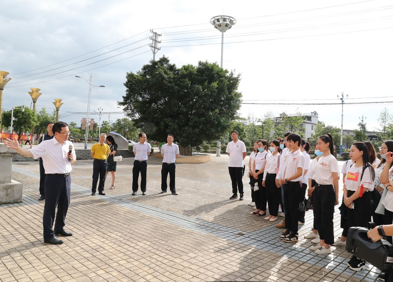 在学校东门前,贺祖斌校长为大家讲述了我校三大校区的前世今生和变迁沿革;在图书馆内,贺祖斌校长为同学们讲解了雁山校区整体布局规划,带领同学们参观了图书馆的现代化硬件设施,鼓励同学们多在阅读的乐园、学术的殿堂里遨游;在校友林前,贺祖斌校长、相关职能部门负责人与同学们一同种下了“2020届毕业生纪念树”;在起文楼北楼大厅,贺祖斌校长带领大家重温“尊师重道 敬业乐群”的校训精神、回顾我校首任校长杨东莼先生“建设广西之柱石”的殷切嘱托、展望“建设国内一流、国际知名、教师教育特色鲜明的国内高水平大学”的美好愿景。