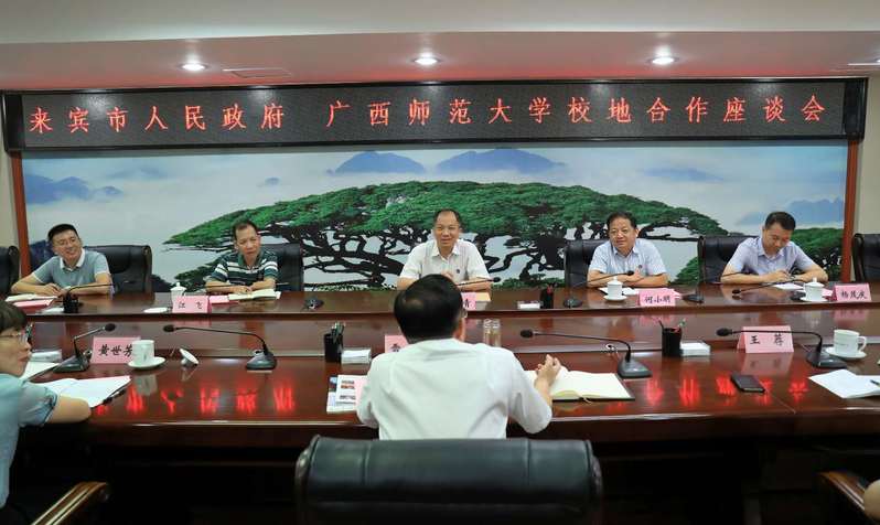 雷应敏对我校长期以来对来宾发展建设的支持和帮助表示感谢,他希望来宾市与广西师范大学能进一步精心组织、增进交流,大力推动项目合作特别是教育合作,做到成熟一项落地一项,力争打造校地合作新标杆。