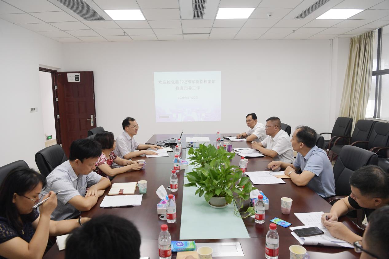邓军实地考察了档案馆校史文化长廊、馆藏档案资源、档案库房以及办公场所,召开座谈会详细听取了档案馆主要负责人关于学校档案工作现状、取得的成绩、面临的问题以及下一步重点工作的汇报。