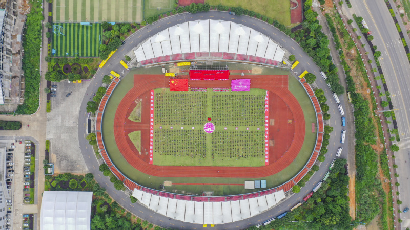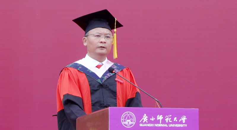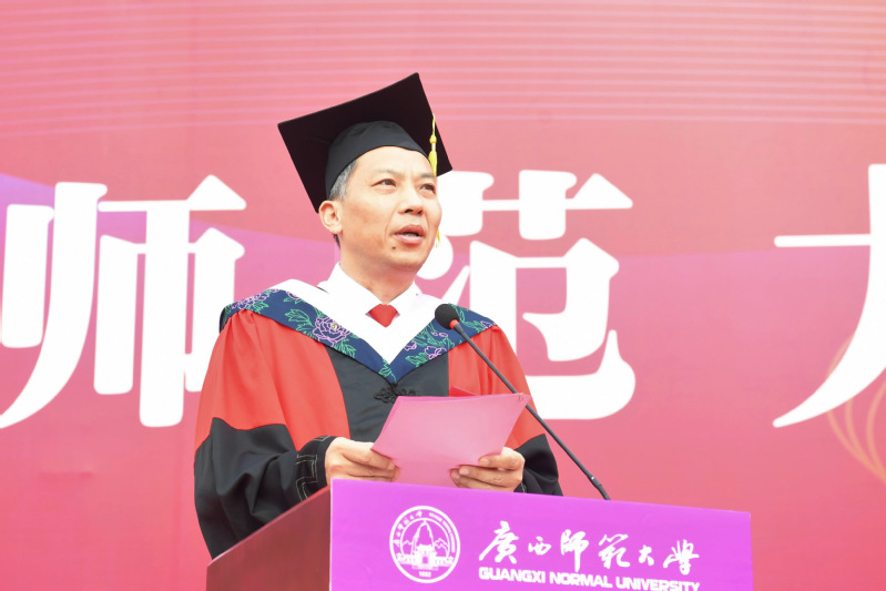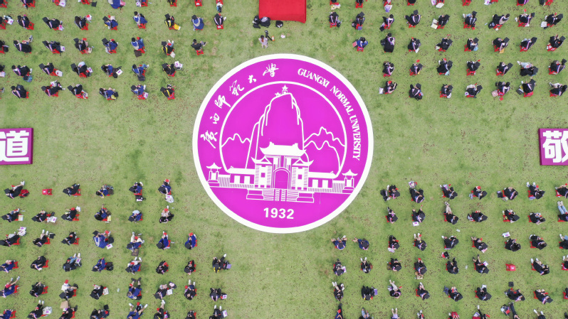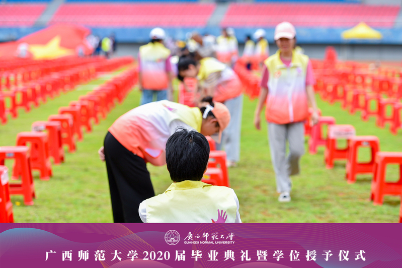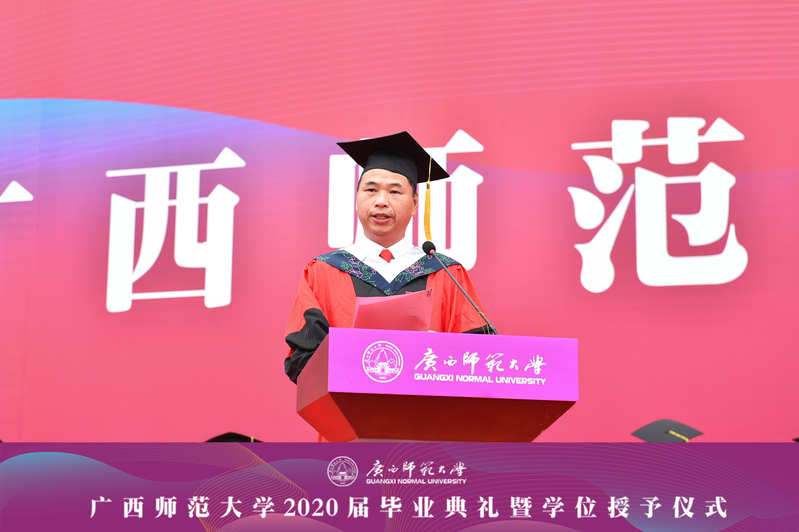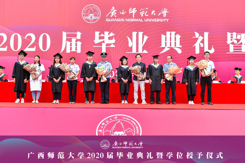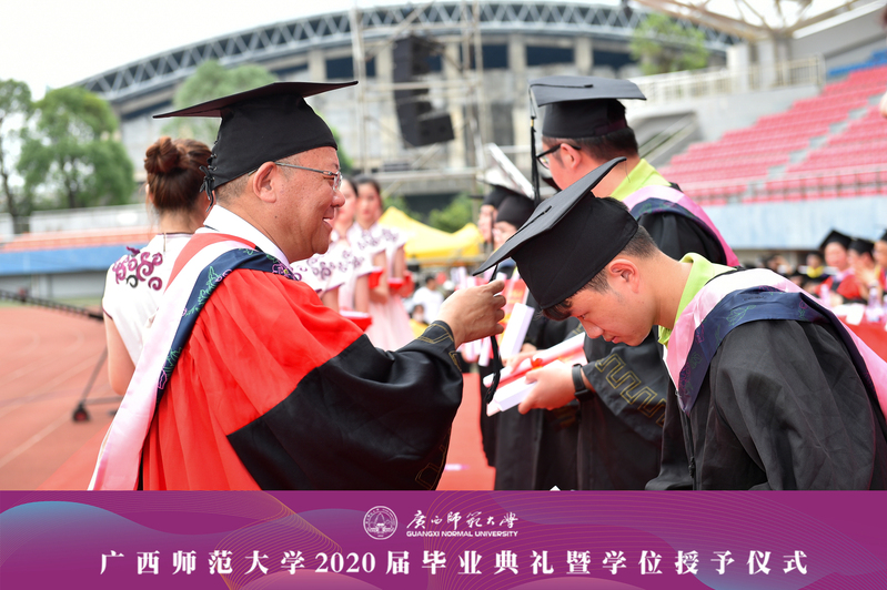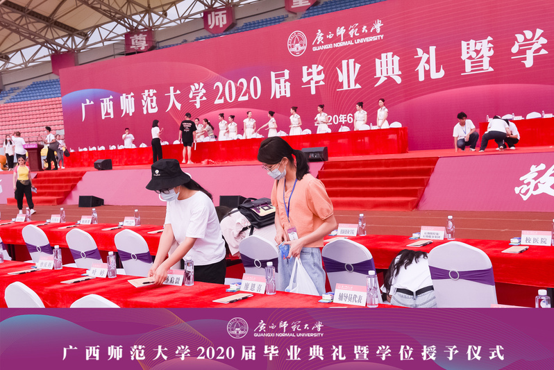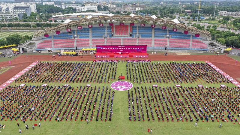 历史上首次线上线下同步进行的毕业典礼,注定是特别且难忘的。由于疫情影响,广西师范大学历史上第一次“线上线下”毕业典礼于6月23日上午在雁山校区体育馆举行,典礼全程进行网络直播,典礼现场有3500多名毕业生以及逾6.9万未能到场的毕业生、毕业生亲友、校友等社会各界嘉宾在线观礼。校党委书记邓军、校长贺祖斌等全体校领导在主会场为毕业生代表拨穗,赠送毕业生纪念品。校党委副书记旷永青主持仪式。
