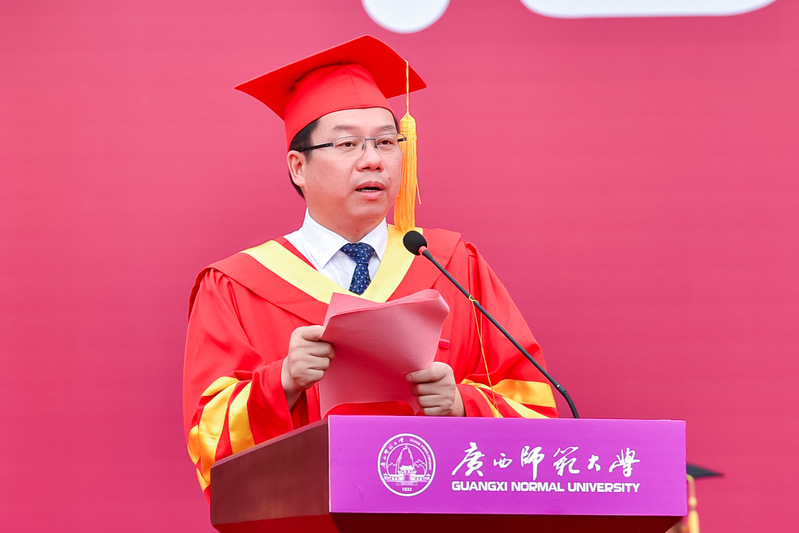 本次毕业典礼暨学位授予仪式是广西师范大学首次本硕博联合毕业典礼,典礼现场“黑蓝红”的颜色夺人眼球,人才济济一堂。共同感受师大精神的代代传承,一同奔赴可期的未来。