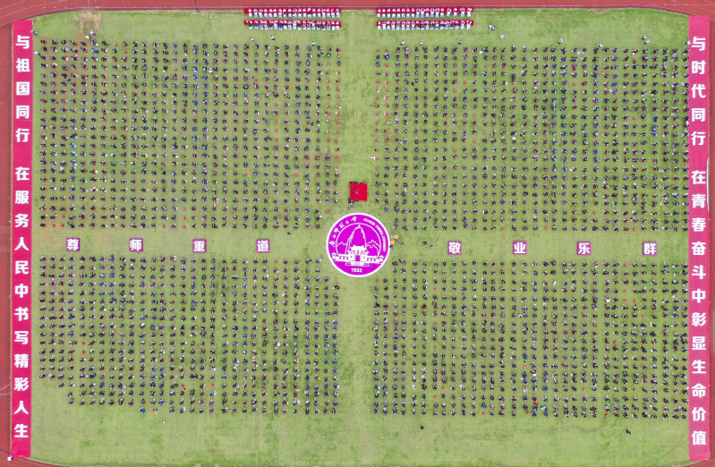在典礼布置现场,巨大的横幅书写着邓军书记对师大学子的最深情的送别与期盼:与时代同行,在青春奋斗中彰显生命价值;与祖国同行,在服务人民中书写精彩人生。