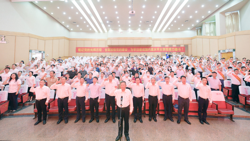 7月1日,我校在育才校区田家炳教育书院报告厅举行庆祝中国共产党成立99周年表彰大会,回顾党的奋斗历程与光辉历史,表达对党的无限忠诚与热爱之情;学习、表彰先进集体和优秀个人,凝聚起乘势而上奋勇向前的磅礴力量。校党委书记邓军率全体参会党员重温入党誓词,并在大会上讲话;校党委副书记、校长贺祖斌主持会议。