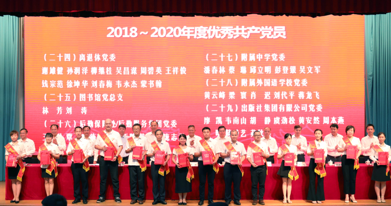 校领导旷永青、赵铁、孙杰远、莫坷、林春逸、李英利,校党委常委黄轩庄、林国庆、黄海波出席表彰大会;学校各二级单位党委、党总支书记、副书记,机关党委各党支部书记,以及受到表彰的2018~2020年度校级先进基层党组织、优秀共产党员、优秀党支部书记、优秀党务工作者参加会议。