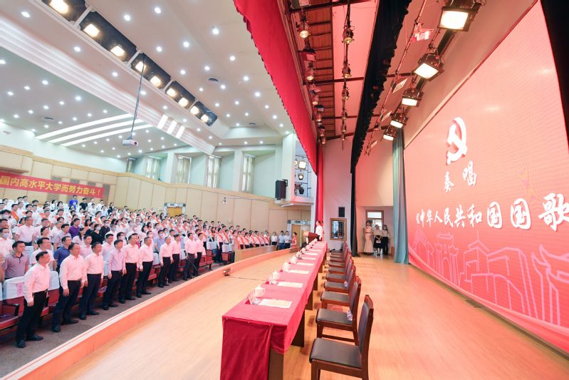 大会在全场合唱《没有共产党就没有新中国》的歌声中落下帷幕,激荡人心的歌曲也激励着在场的每位党员干部,铭记党的光辉历程,全面加强党的建设,为早日建成国内高水平大学而努力奋斗。